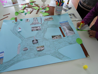 Κάναμε ομαδικό κολάζ με εικόνες που εκτυπώσαμε από τις φωτογραφίες που είχαμε βγάλει και πράγματα που ζωγραφίσαμε μόνοι μας.